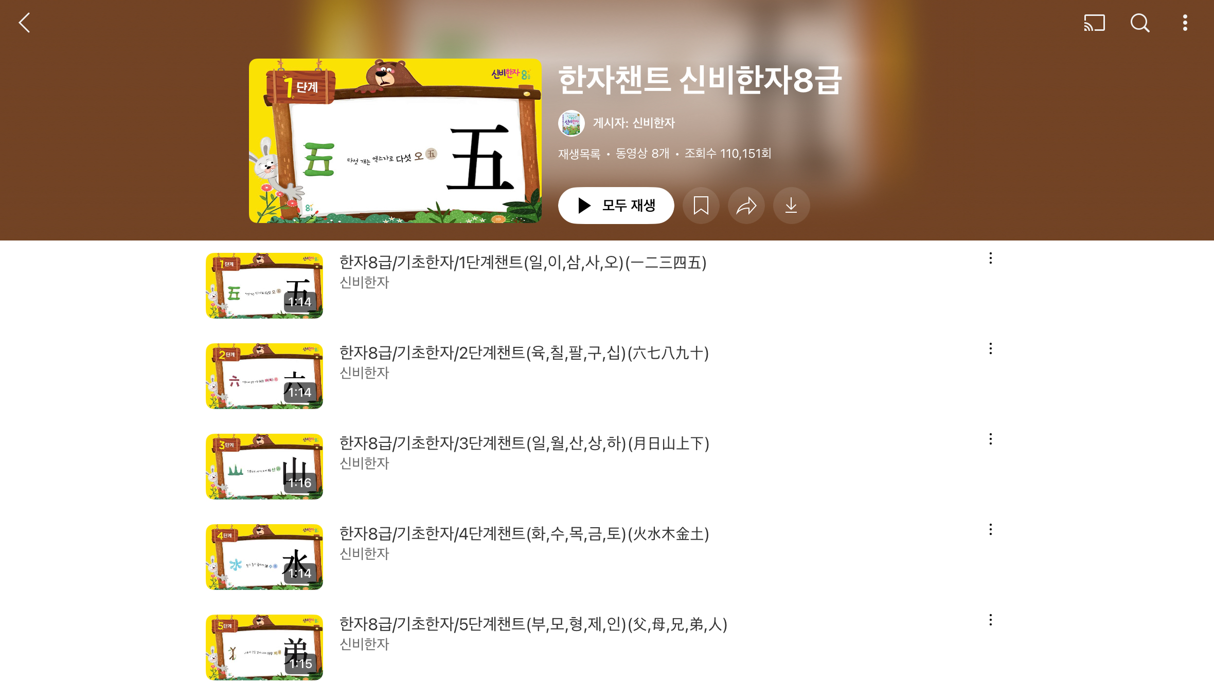 한자동요를 보고 따라부르면서 한자를 공부할 수 있고, 급수별로 어린이 한자TV가 있어서 한자 급수시험을 준비하는 아이들도 활용할 수 있습니다. 컨텐츠 자체가 엄청 많은건 아니지만, 동영상 한개가 10분 이내로 짧은 편이고, 급수로 나눠져 있어서 유용하게 사용 가능합니다.